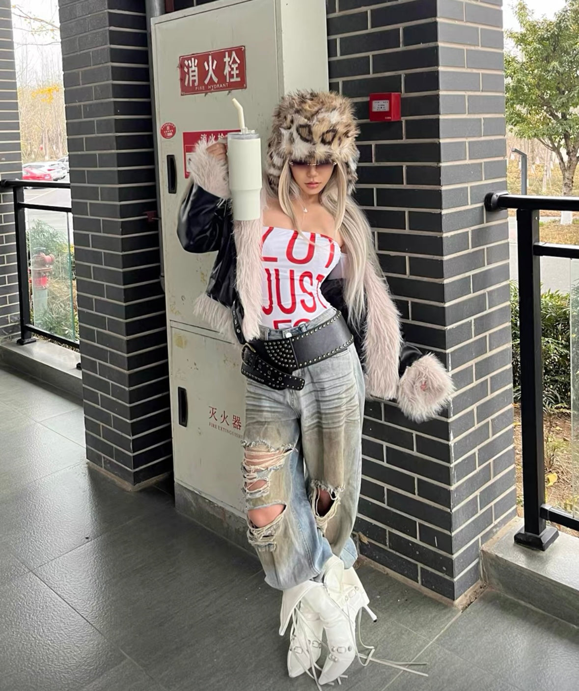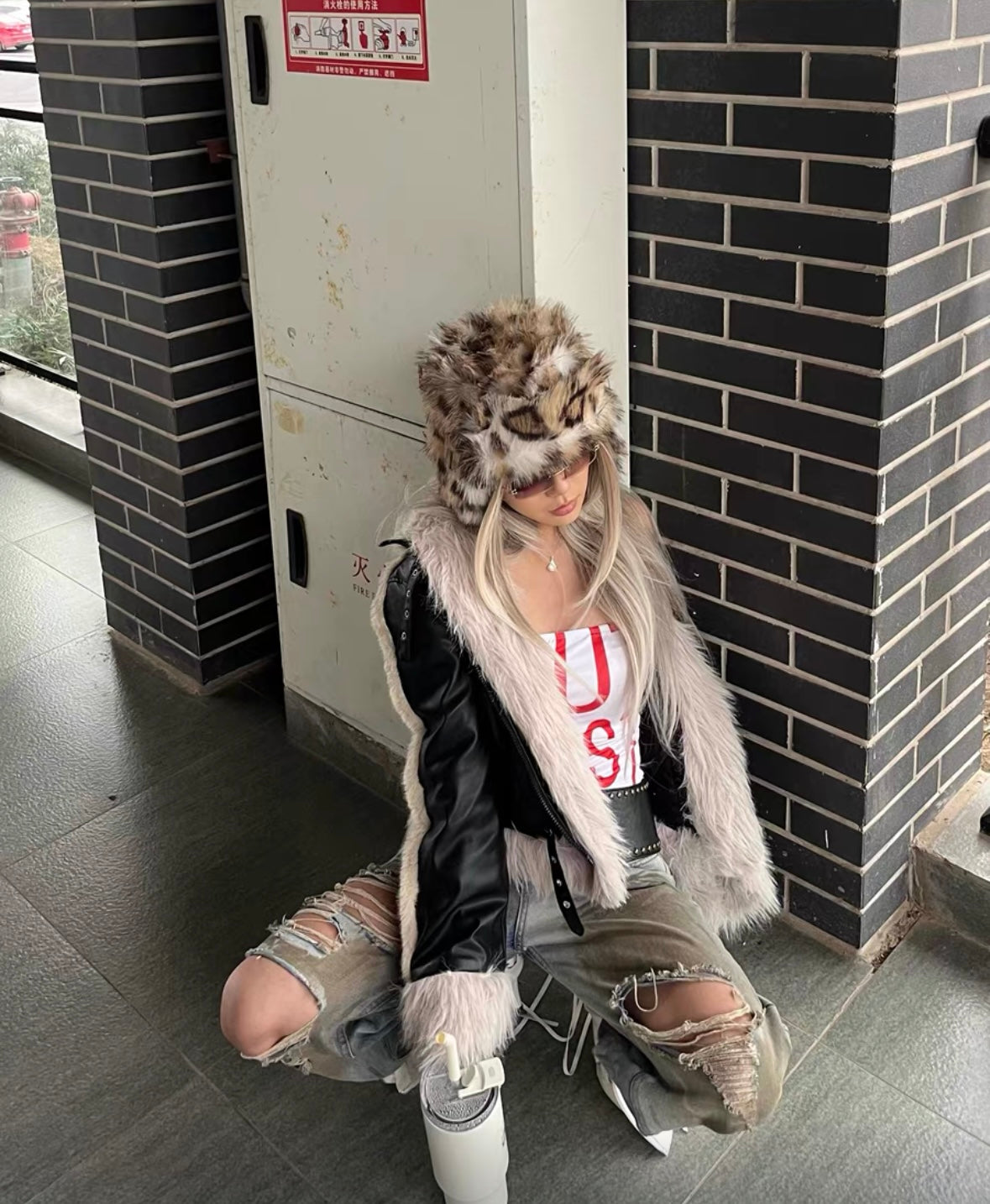 99CLUB Leopard flight cap