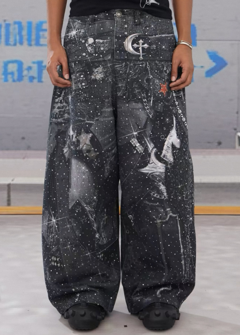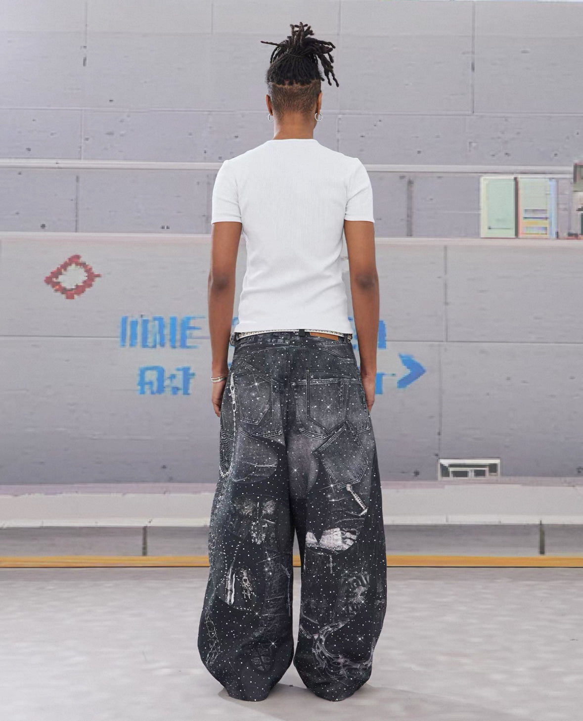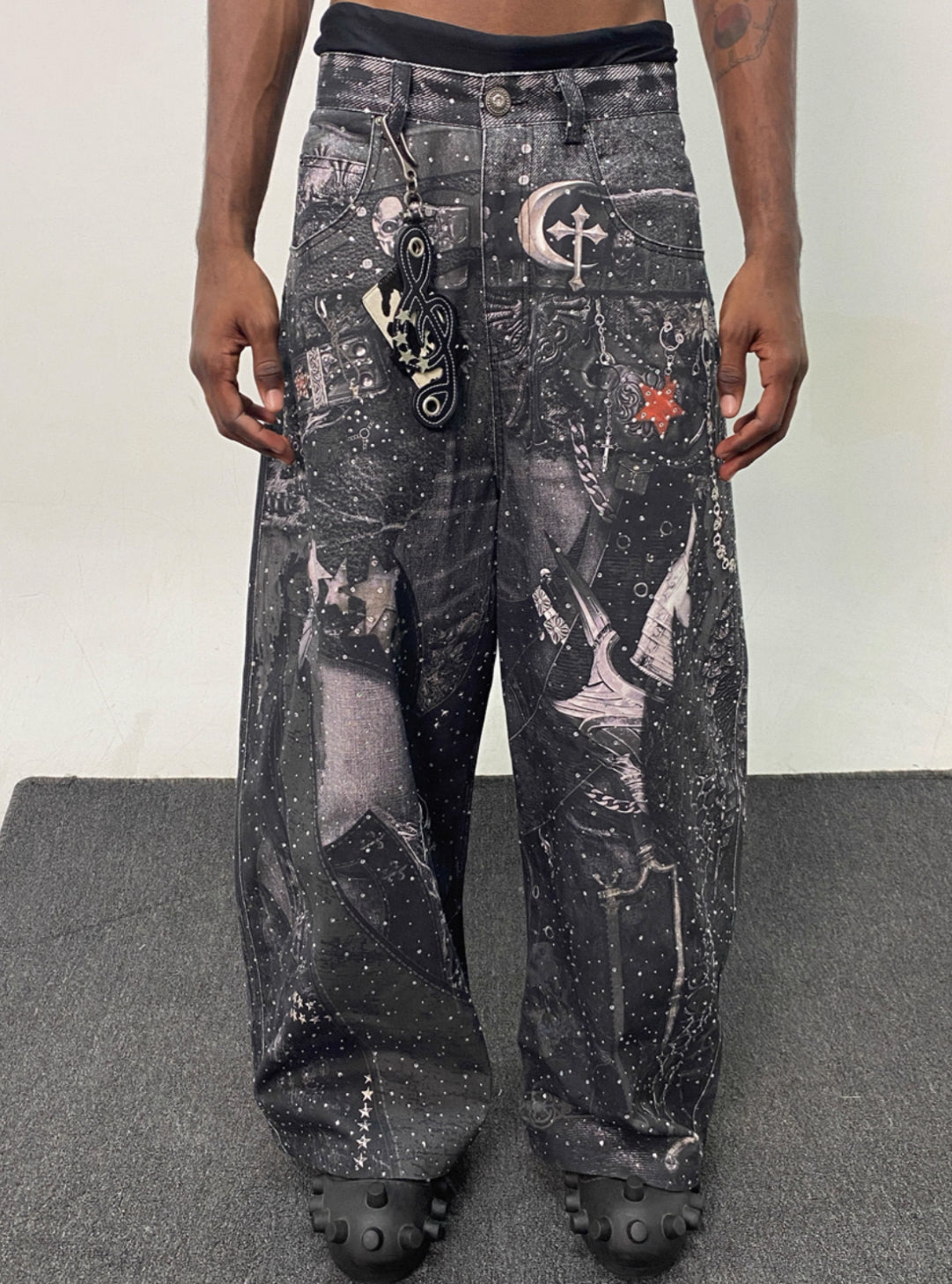 DND4DES Line Stone Print Distressed Denim Jeans