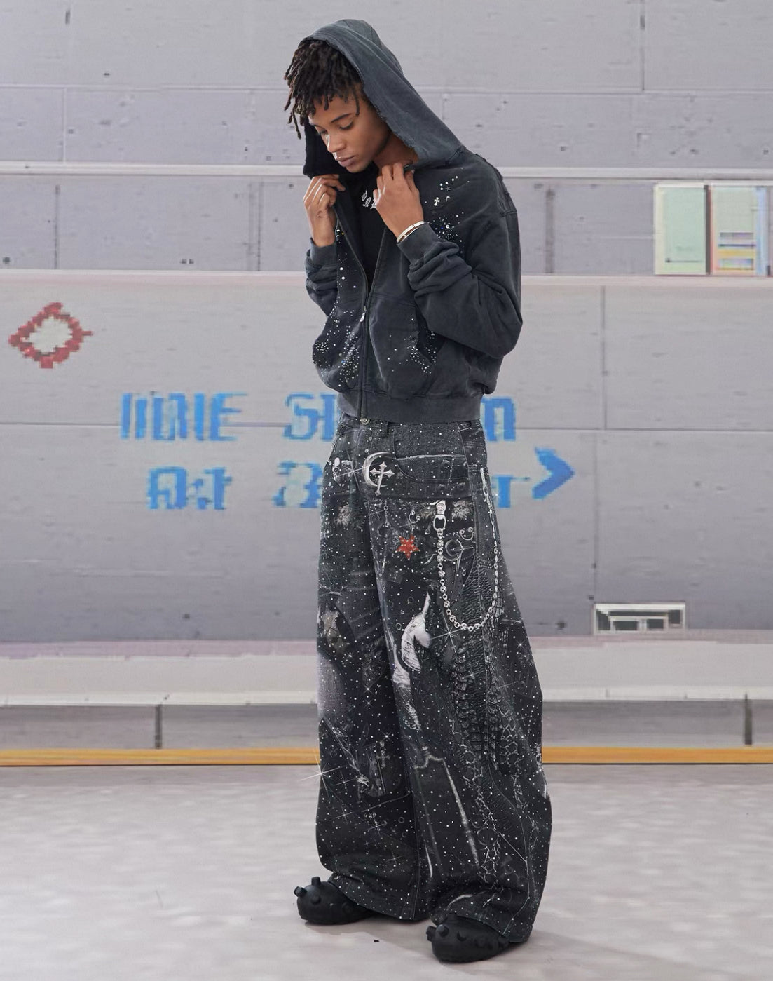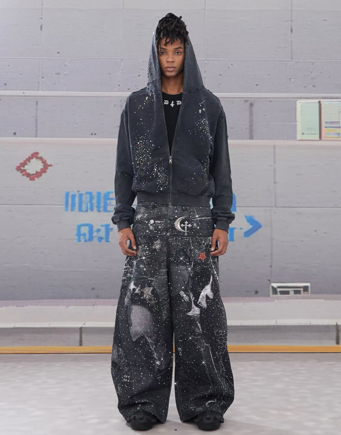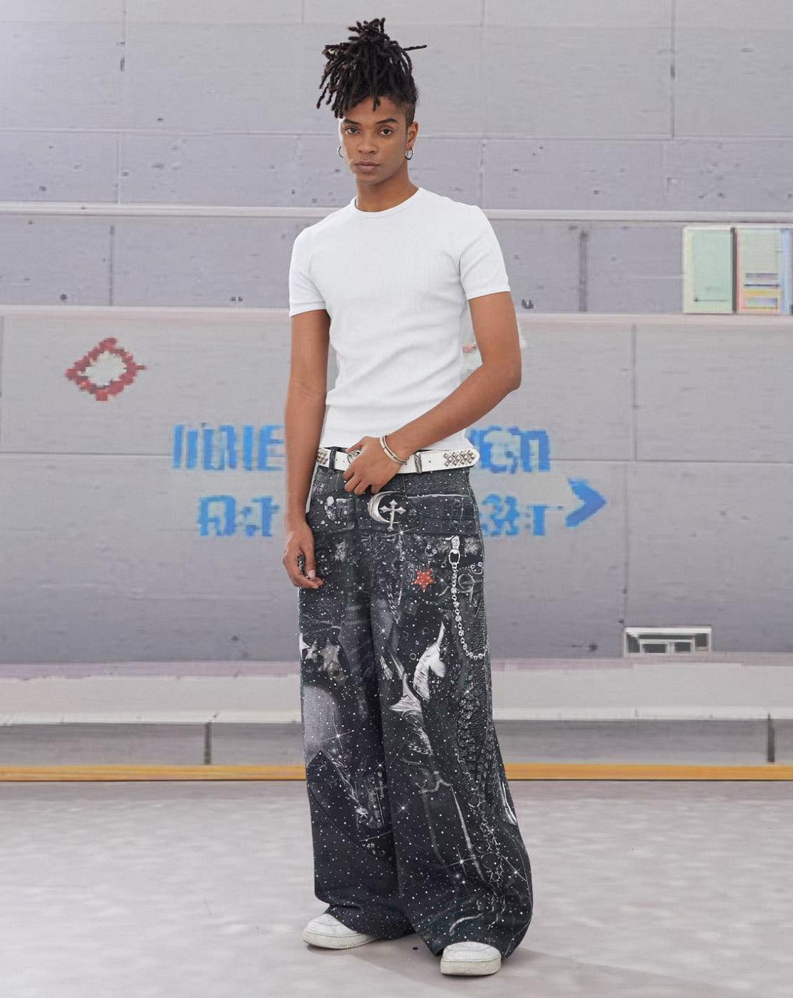 DND4DES Line Stone Print Distressed Denim Jeans
