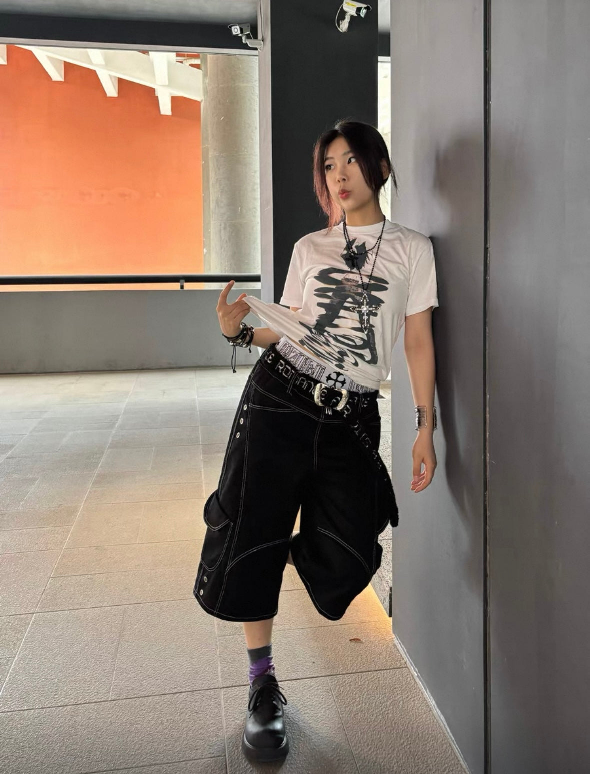 PAIKI Double Waist Half Pants