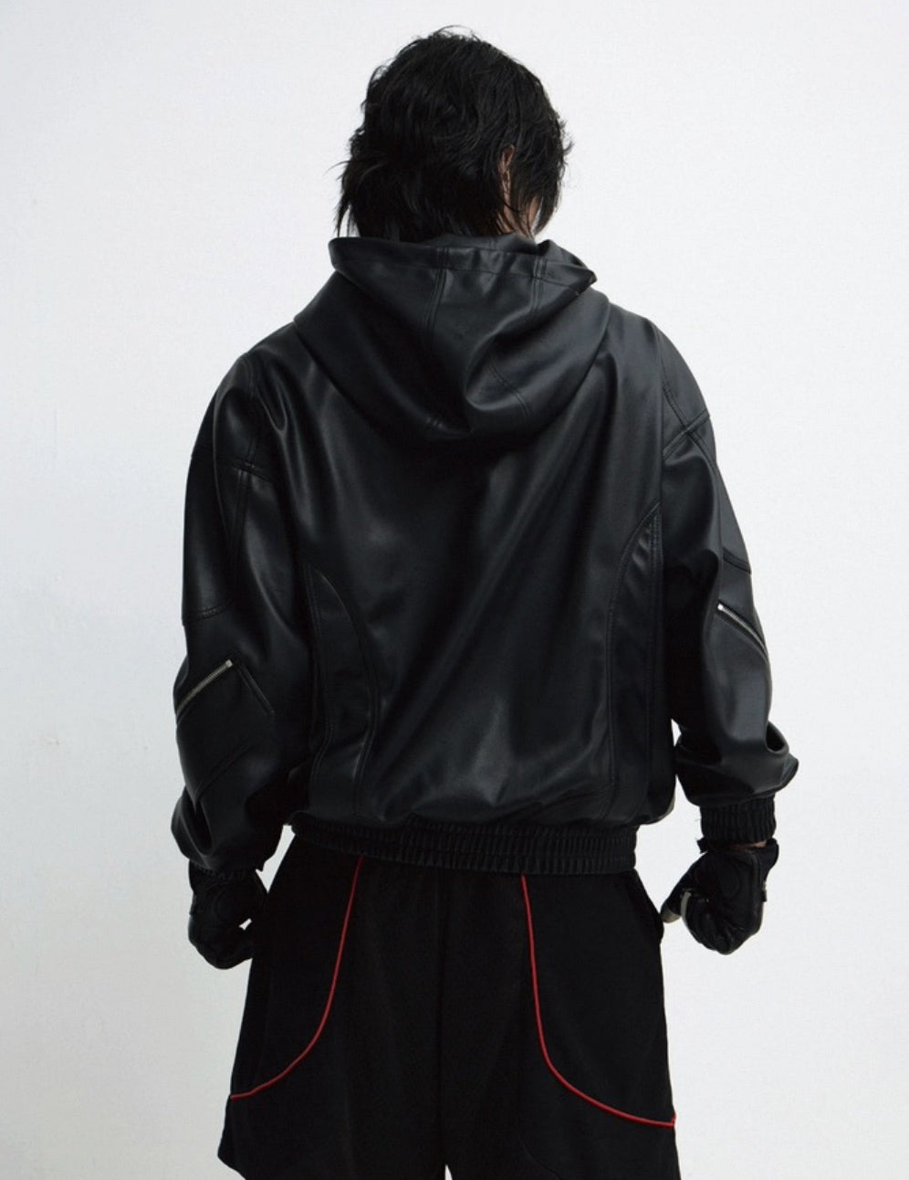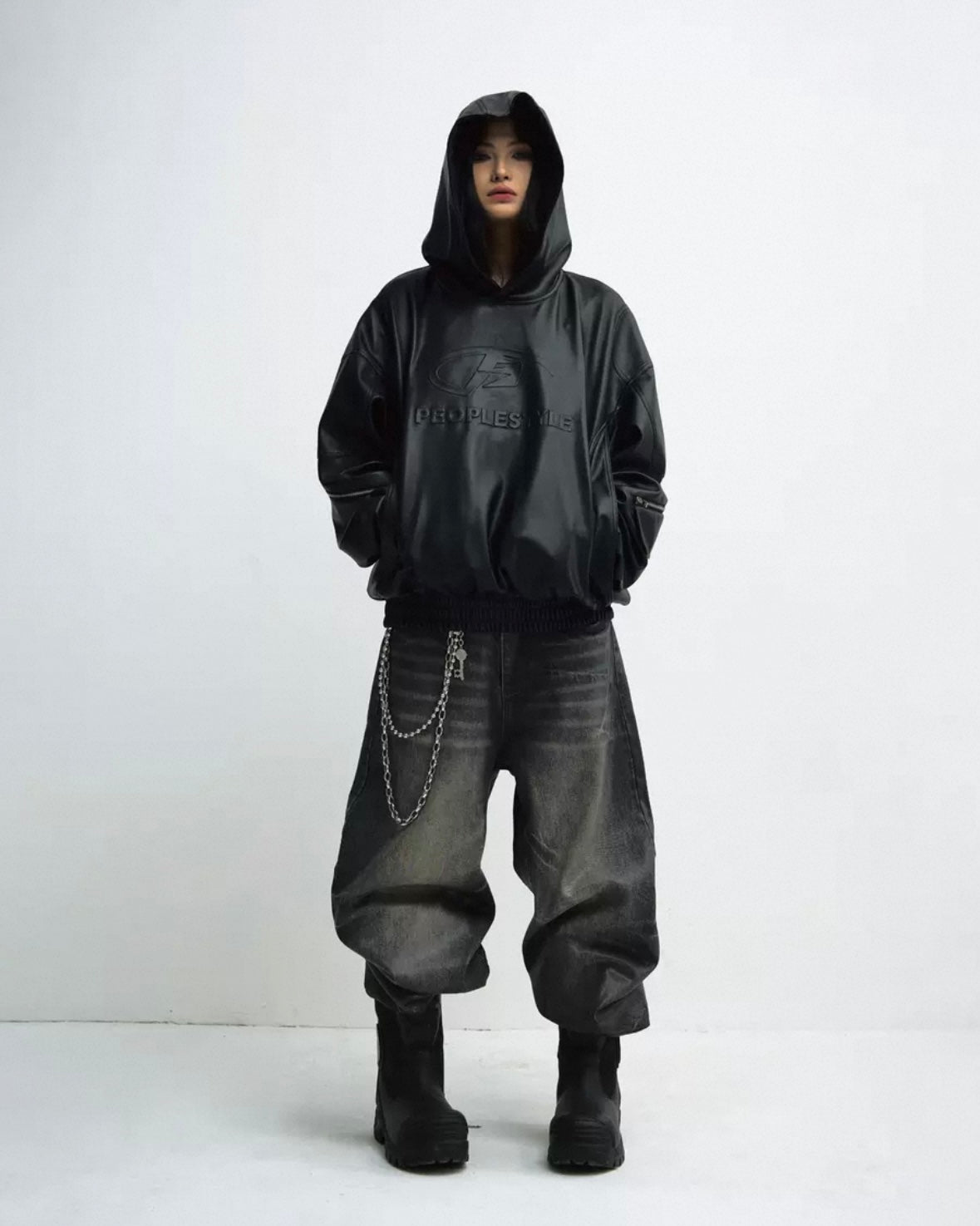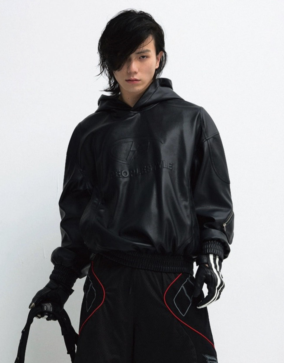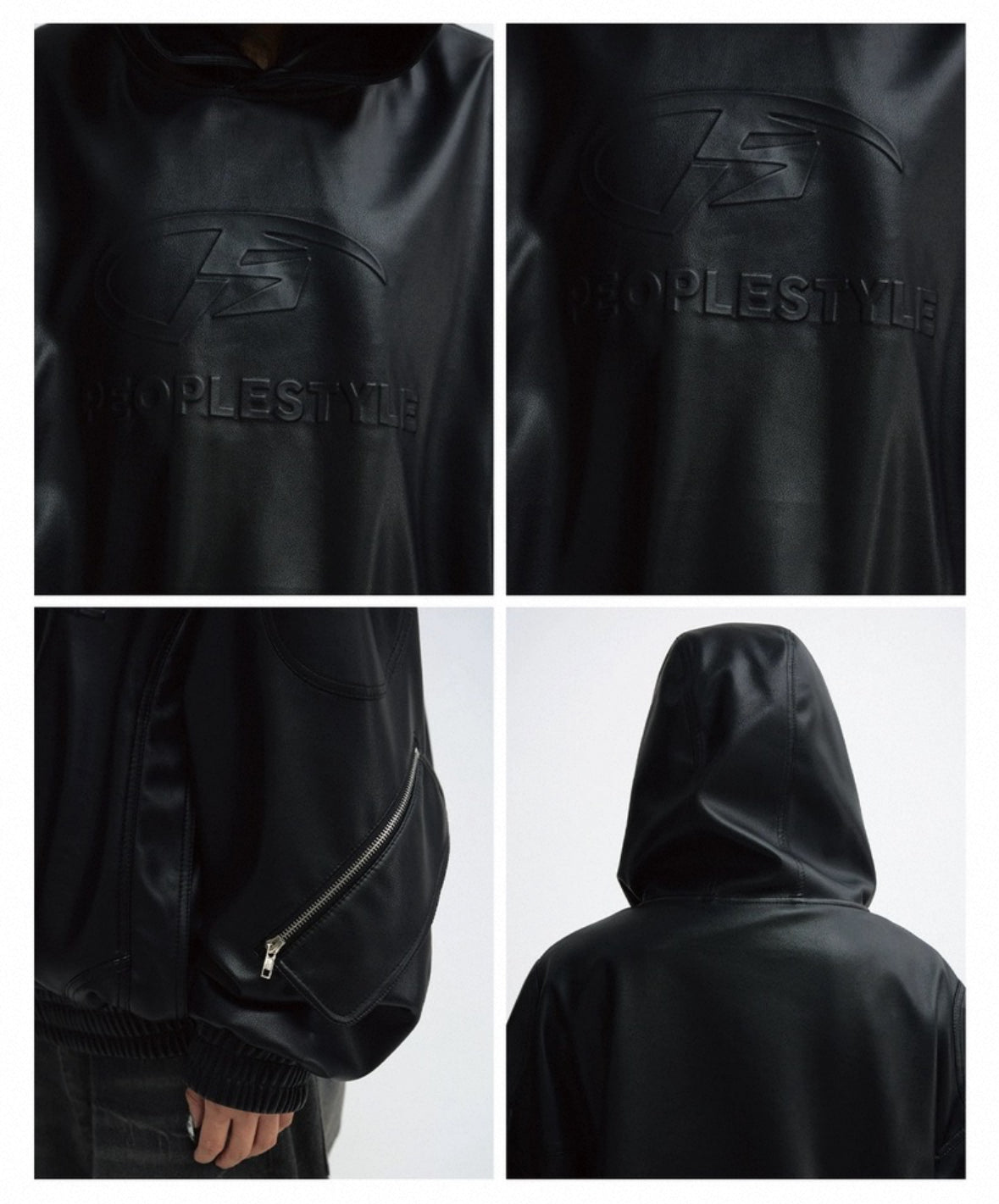 PERSONSOUL PU Leather Hoodie