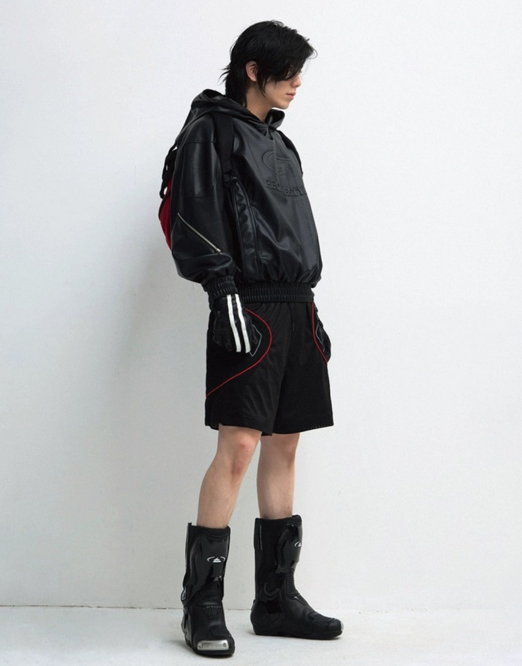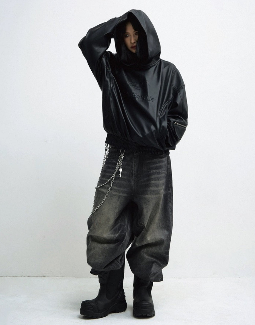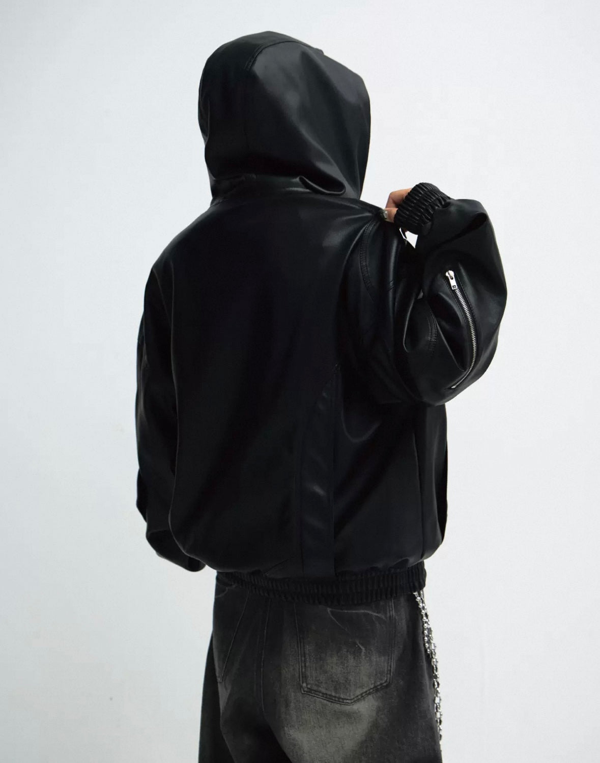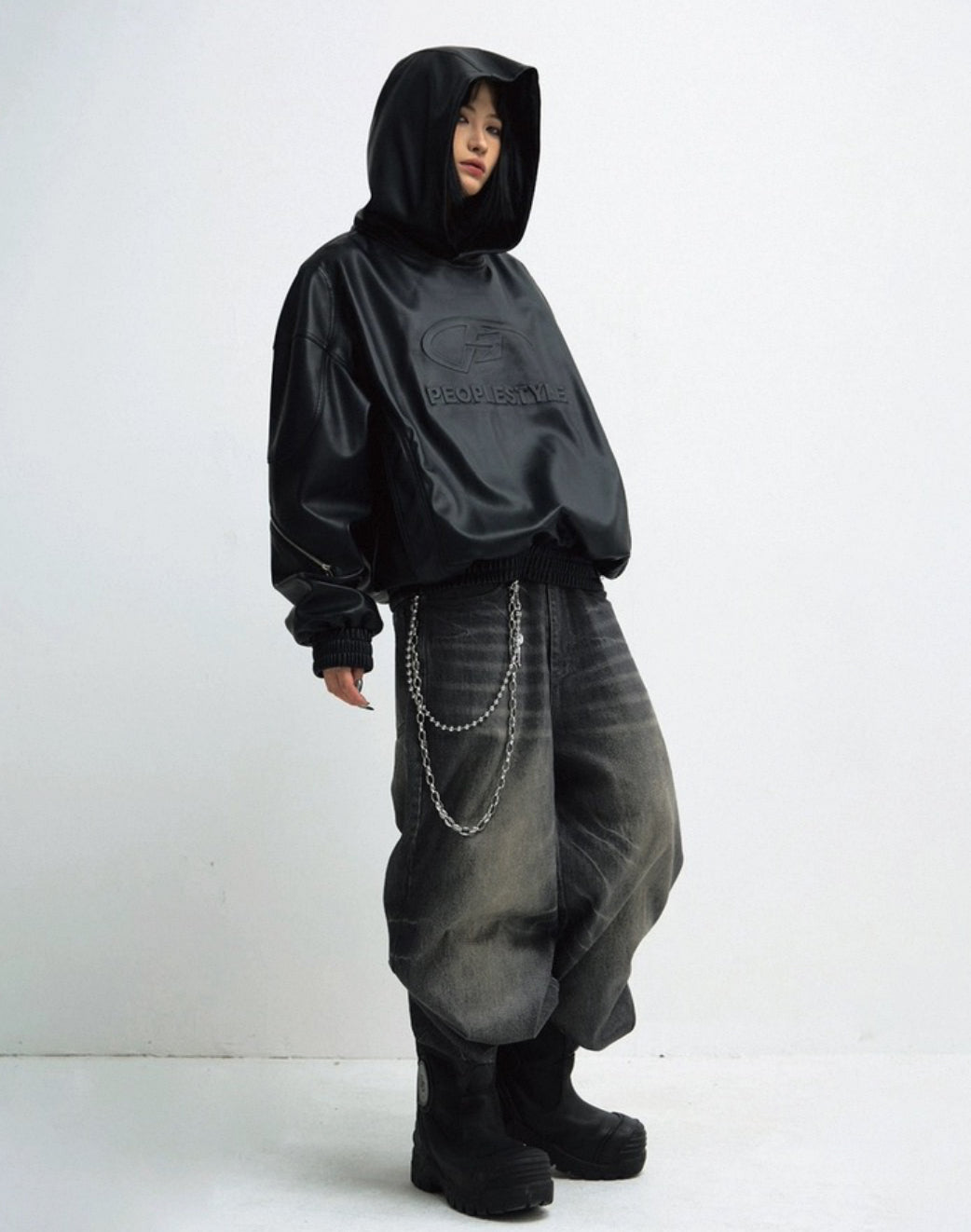 PERSONSOUL PU Leather Hoodie