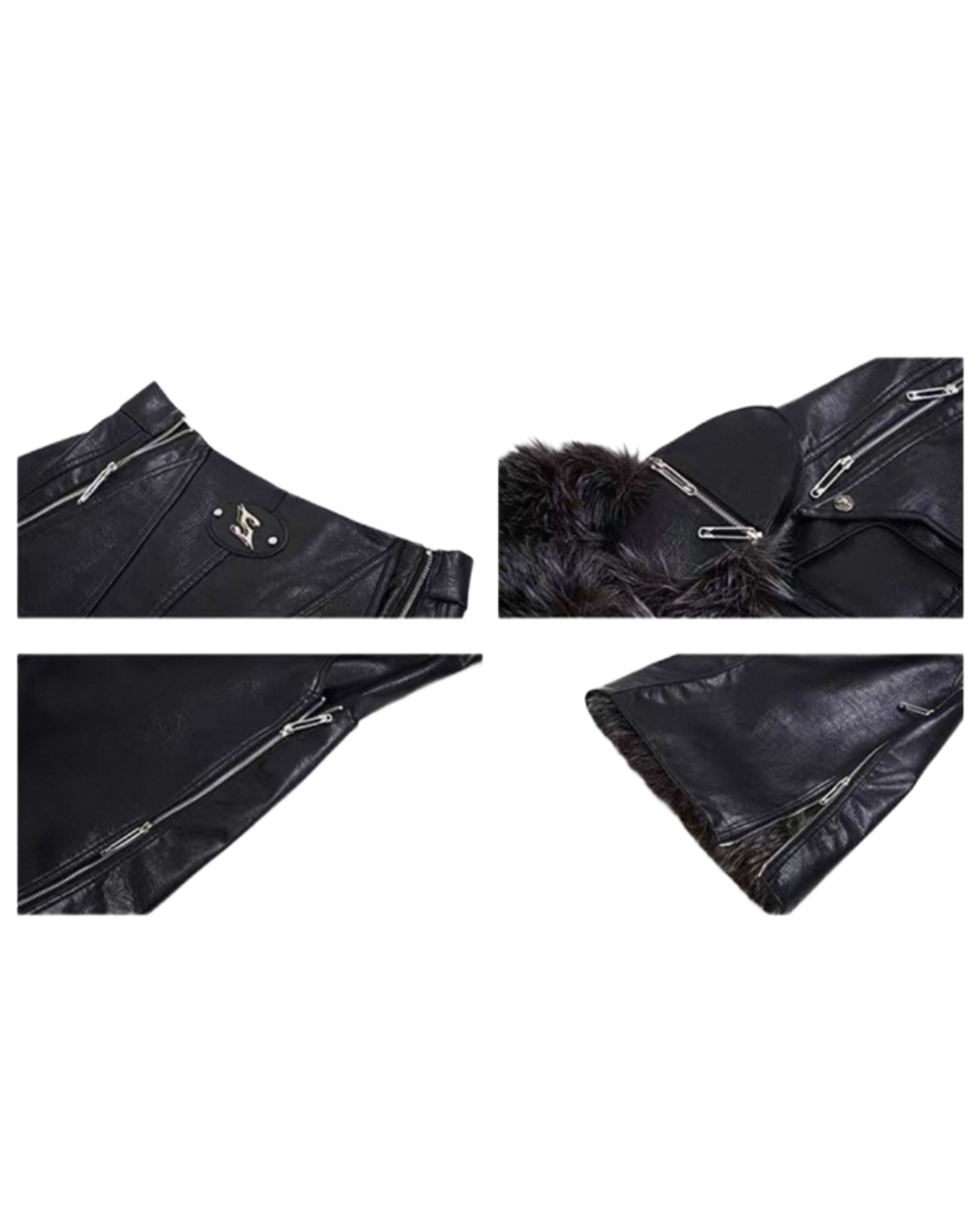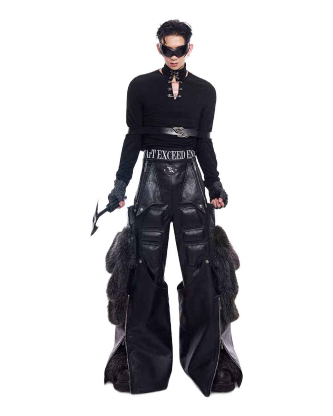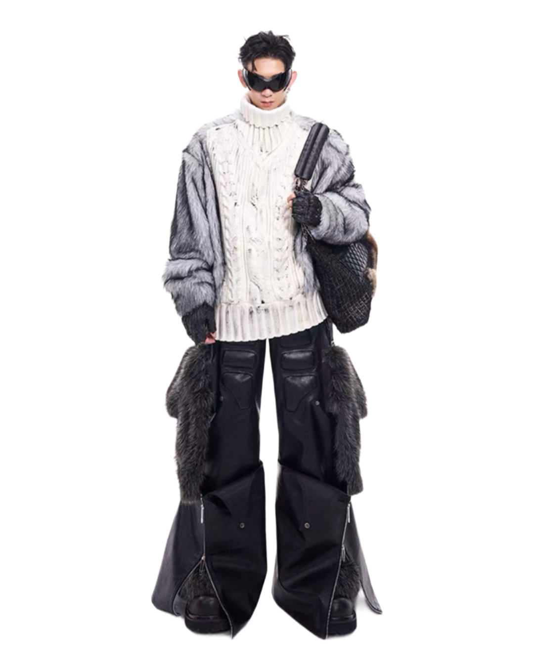 STARTEXCEEDEND Splicing Leather Fur Cargo Pants